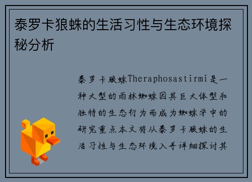 泰罗卡狼蛛的生活习性与生态环境探秘分析