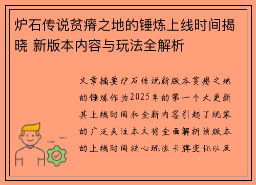 炉石传说贫瘠之地的锤炼上线时间揭晓 新版本内容与玩法全解析