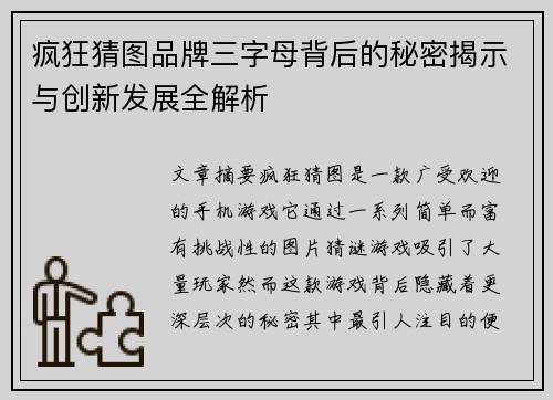 疯狂猜图品牌三字母背后的秘密揭示与创新发展全解析